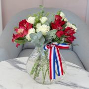 JARRÓN DE FLORES ROJAS Y BLANCAS.