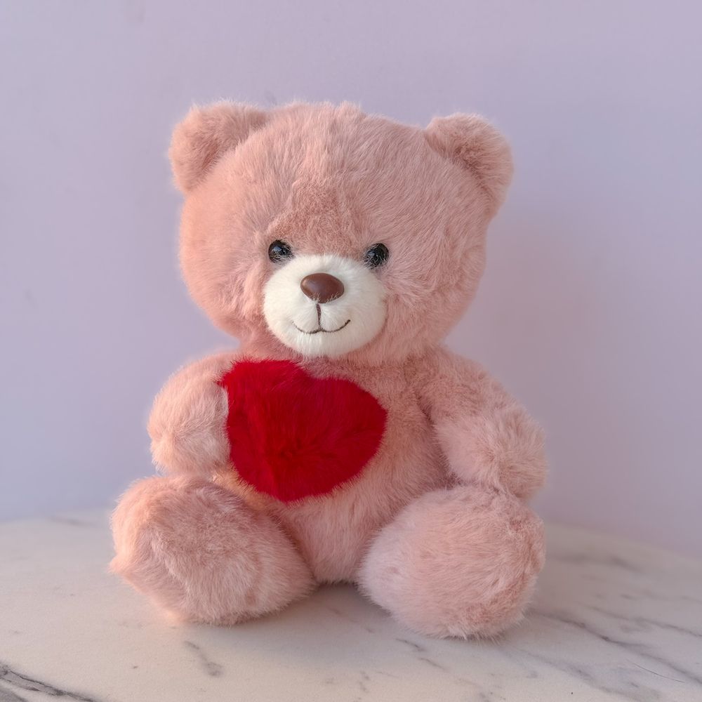 OSO COLOR ROSA AMARRONADO CON UN CORAZÓN.