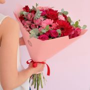 RAMO UNA DOCENA DE 13 FLORES ROSADAS Y ROJAS.