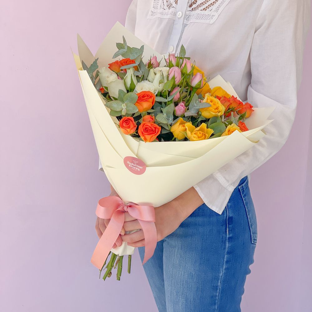 UN RAMO DE MINI ROSAS COLORIDAS.