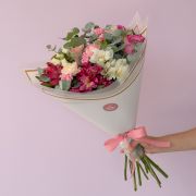 RAMO DE UNA DOCENA DE FLORES VARIADAS TONOS ROSADO, BLANCO Y LILA.