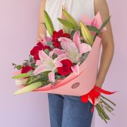 RAMO DE 3 LIRIOS CON 8 FLORES ROJAS.