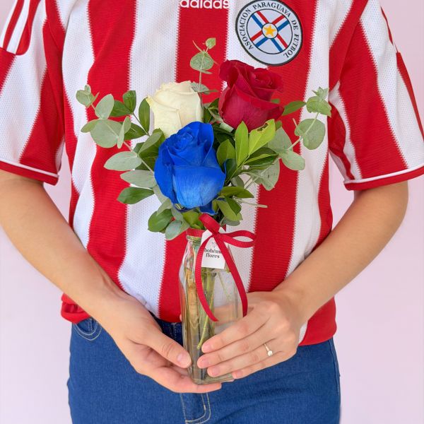 JARRÓN DE 3 ROSAS TRICOLOR.