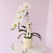 ORQUIDEA EN BASE DE CERAMICA CON PELUCHE DE CROCHET.