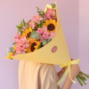 RAMO DE FLORES VARIADAS TONOS PASTELES.