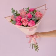 UN RAMO DE ROSAS Y CLAVELES ROSADOS.